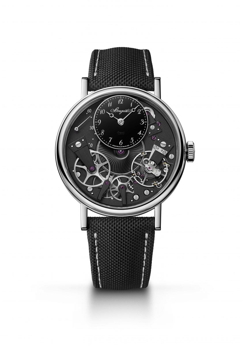 ブレゲ「トラディション 7038」 Ref.7038BB/N9/7V6 D0 851万4000円/自動巻き(Cal.505SR)、約50時間パワーリザーブ。18Kホワイトゴールド、サテン仕上げファブリックストラップ。直径37mm、厚さ11.6mm。3気圧防水。