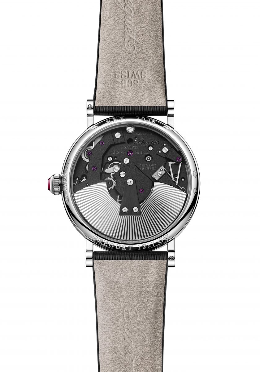 ブレゲ「トラディション 7037」 Ref.7037BB/YB/5V6 761万2000円/自動巻き(Cal.505SR)、約50時間パワーリザーブ。18Kホワイトゴールドケース(シースルーバック)、ラバーストラップ。直径38mm、厚さ12.7mm。3気圧防水。