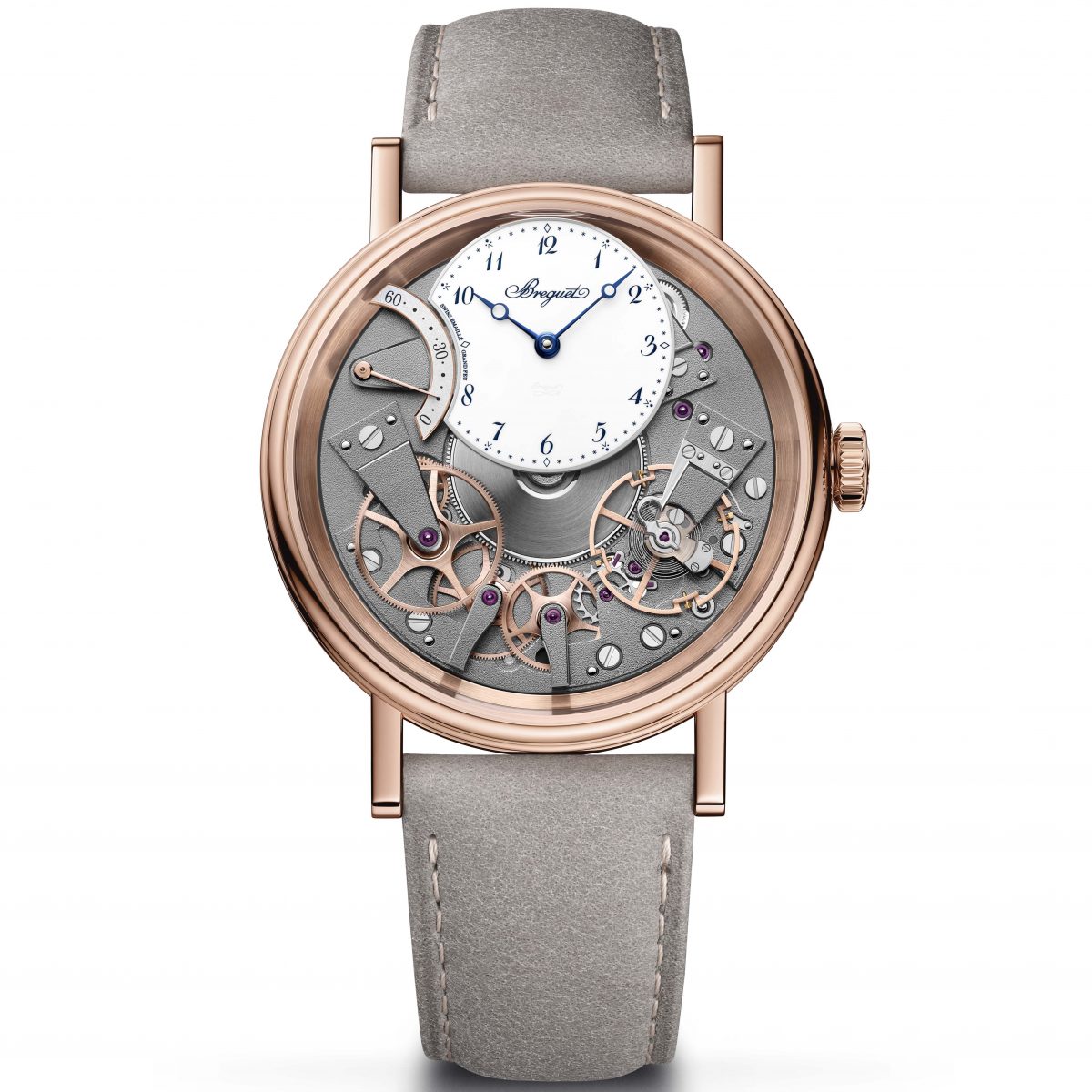 2005年の誕生以来、ブレゲのトラディションは腕時計の常識を覆してきた。通常は裏側に隠れる機構を文字盤側に大胆にレイアウトし、左右対称の構造美と精緻な仕上げを“魅せる”ことで唯一無二のスタイルを確立したのだ。