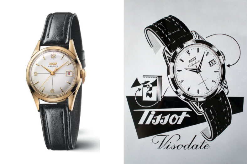 スイスの山間に位置するル・ロックルで1853年に産声を上げたティソ。その170年を超える歴史において、エポックメイキングな存在が「ヴィソデイト」である。1950年代初頭、腕時計が大きな転換期を迎えるなかで誕生したこのタイムピースは、文字盤に日付け表示窓を設けるという、当時としては極めて画期的で実用的なアプローチを提示した。今回、ブランドはこの伝説的モデルを最新のウオッチメイキング技術で蘇らせ、新たなヘリテージ・コレクションとして再構築した。