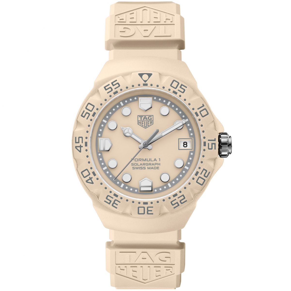 タグ・ホイヤー「タグ・ホイヤー フォーミュラ1 ソーラーグラフ」 Ref.WBY1164.FT8114 28万6000円/クオーツ(Cal.TH50-00)。THポリライト製ケース、ベージュラバーストラップ。直径38mm。100m防水。